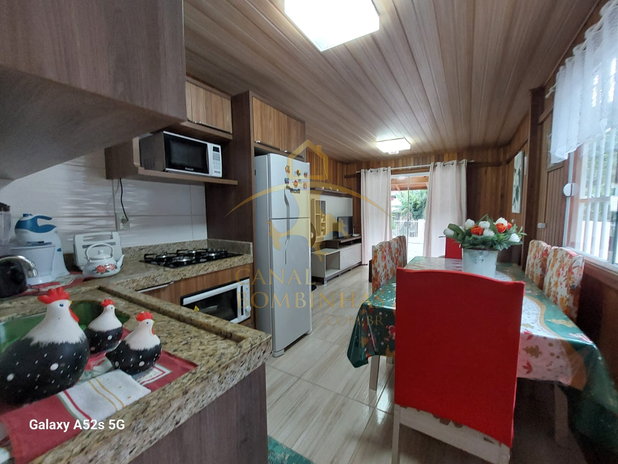 Cozinha com móveis sob medida; geladeira, fogão cook top, forno elétrico, micro-ondas, utensílios básicos para cozinha.